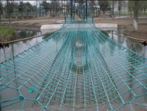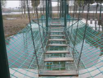 吊桩桥:操作者手扶钢链,脚踩吊桩,向前挪移,从桥的一端到达另一端。
