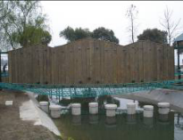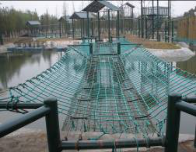 乘风破浪:参与者手扶钢链,脚踩木版,克服因为人体重力引起的摇晃,依次通过一块块木版,到达对岸。